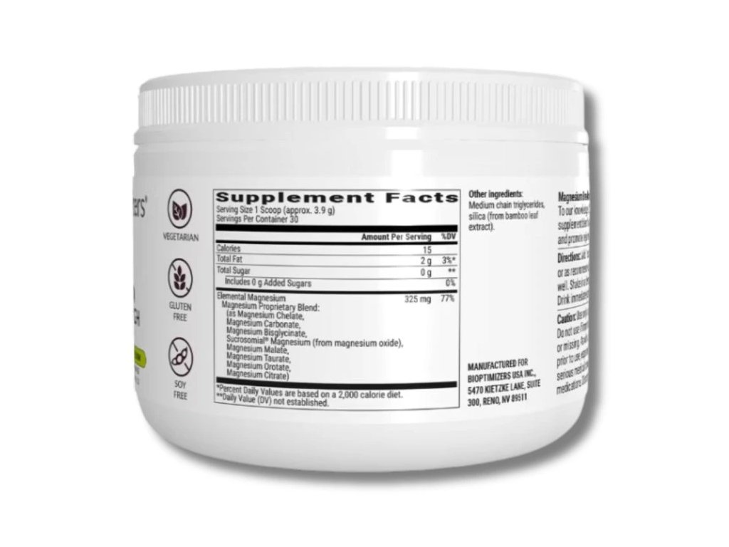 Bioptimizers Magnesium Breakthrough - 8 forem hořčíku v prášku, 117 g Rozspustný komplex 8 forem hořčíku, bez příchutě.