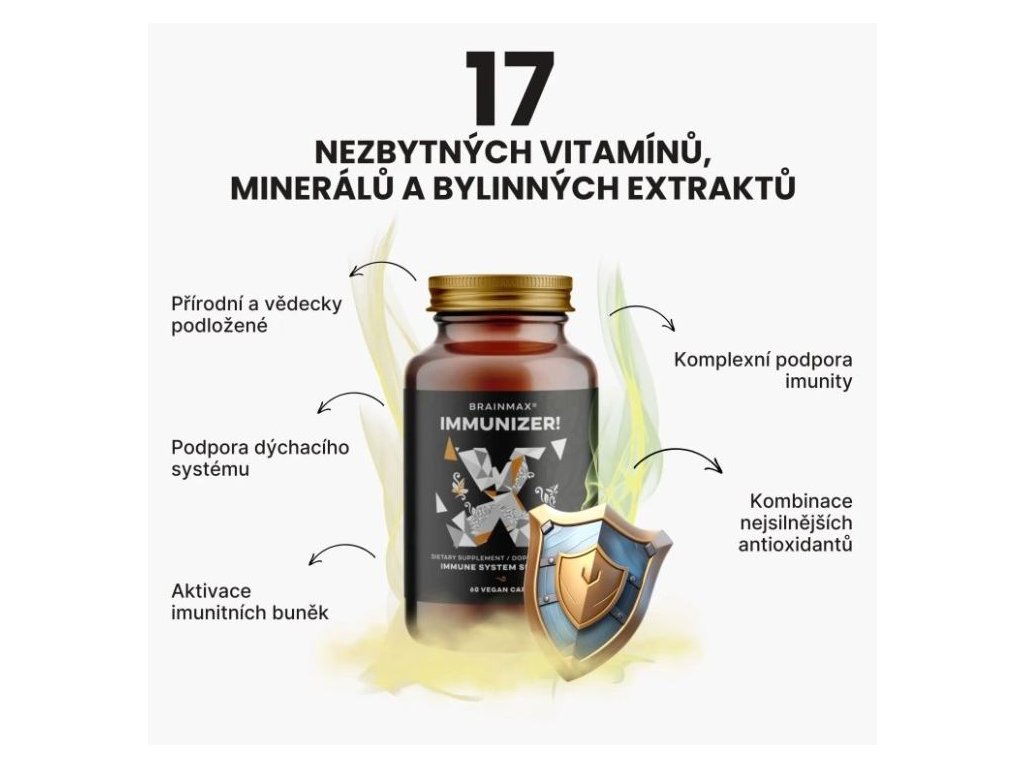 Vitamíny a minerály jsou nezbytné pro správnou funkci imunitního systému. Immunizer kombinuje vitamíny a minerály s vysoce účinnými extrakty z bylin, které dohromady vytvářejí synergický efekt pro posílení přirozené obranyschopnosti těla. Jeho složení nejen podporuje celkovou imunitu a udržení zdraví dýchacího systému.