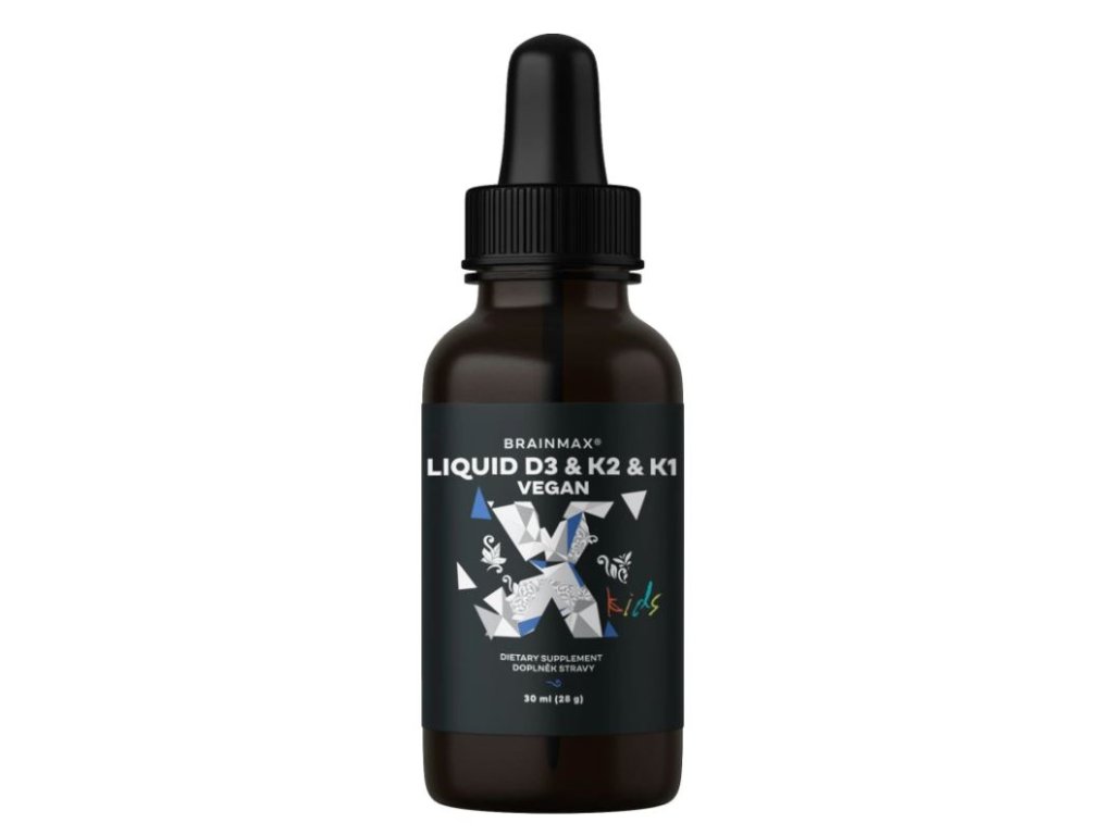BrainMax KIDS Vegan Liquid D3 & K2 & K1, 30 ml Dětské vitamíny pro kosti, zuby, svaly a imunitu s MCT pro vstřebání, 30 dávek
