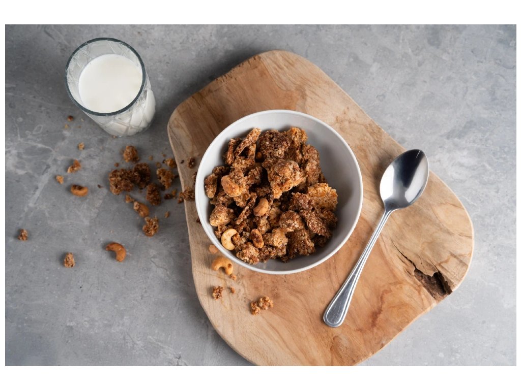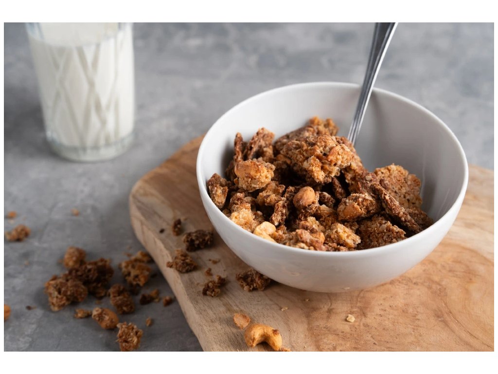 S oslazení jsme použili BIO erythritol. Přírodní sladidlo, které dodává granole jemnou, sladkou chuť bez zbytečných kalorií. Na rozdíl od klasického cukru nepřispívá k výkyvům hladiny cukru v krvi, je šetrný k zubům a zároveň perfektně podtrhuje chuť ostatních ingrediencí. I díky tomu granola splňuje požadavky nízkosacharidového stravování.