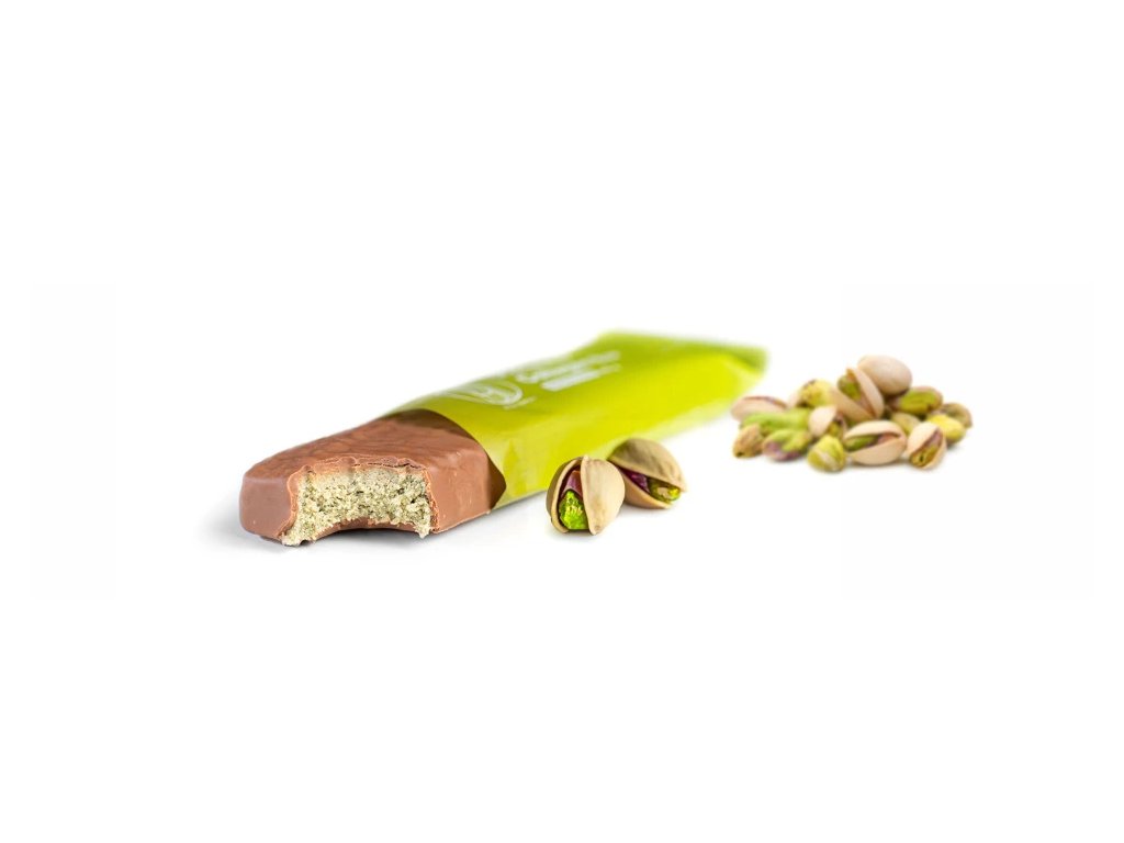 Tyčinku jsme obalili v BIO mléčné čokoládě, která v kombinaci s pistáciemi vytváří opravdovou, svěží delikatesu. Díky vysokému obsahu vlákniny a také proteinu, je naše tyčinka ideálním parťákem například na výlety či do práce.