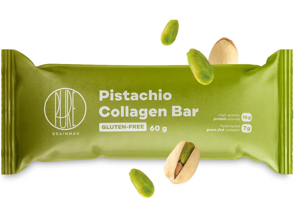 BrainMax Pure Pistachio Collagen Bar, Kolagenová tyčinka, příchuť pistácie, 60 g