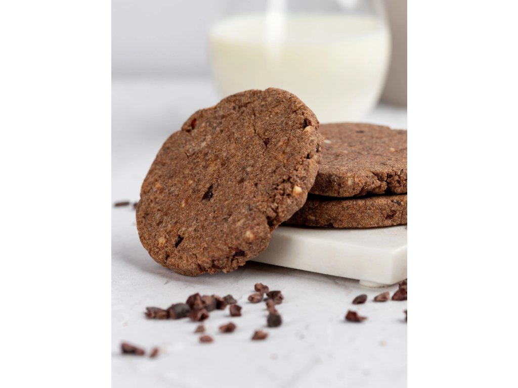 Vláčná sušenka s BIO syrovátkovým a BIO mléčným proteinem. Každá sušenka má 12,8 g bílkovin a díky inulinu také 9,1 g vlákniny, což je polovina doporučeného denní příjmu!