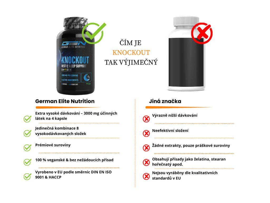 GEN Knockout Sleep support - Podpora spánku a regenerace, 120 kapslí večerní komplex s Shoden® ashwagandhou, hořčíkem a bylinnými extrakty