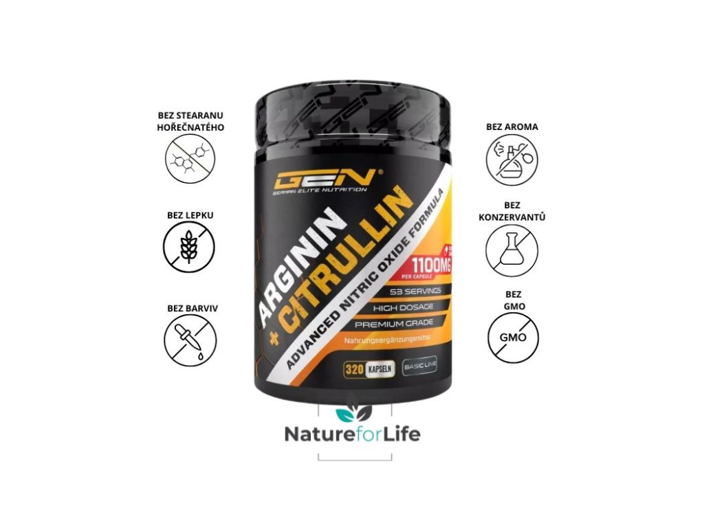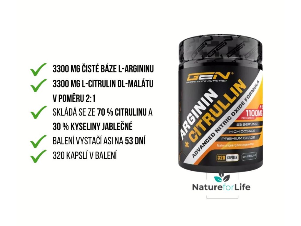 GEN L-arginin + L-citrulin 1100 mg, 320 kapslí