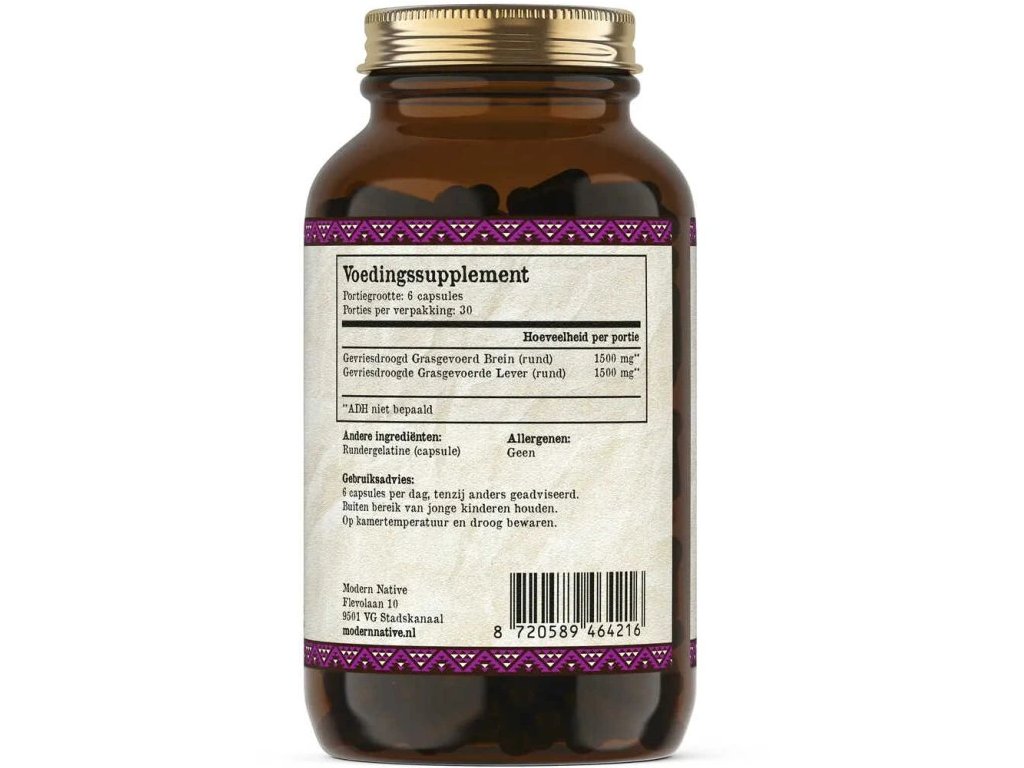 Grass-fed hovězí mozeček od Modern Native je vyroben ze skotu krmeného 100% trávou, chovaného bez hormonů, pesticidů, GMO a zbytečného stresu. Orgány jsou po sklizni šetrně lyofilizovány (sušeny mrazem), což pomáhá zachovat jejich přirozený nutriční profil bez nutnosti vysokých teplot nebo chemického zpracování. Výsledkem je čistý orgánový koncentrát v kapslích – bez chuti, bez plnidel a bez syntetických aditiv.