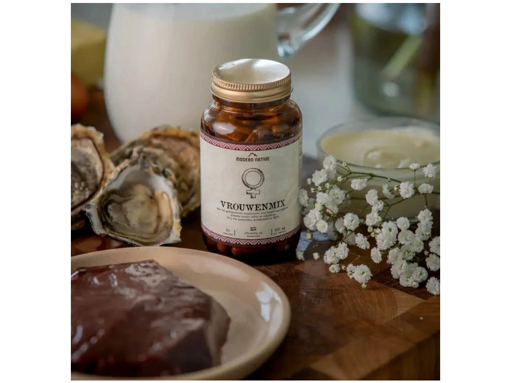 Modern Native Ženský orgánový komplex je doplněk stravy založený na skutečných potravinách, které byly po generace součástí ženské výživy. Spojuje hovězí játra, ženské pohlavní žlázy, ústřice, kefír z volně pasoucího se skotu a kolostrum do plnospektrální kapslové formy, která nabízí přirozený zdroj mikroživin bez syntetických přísad.