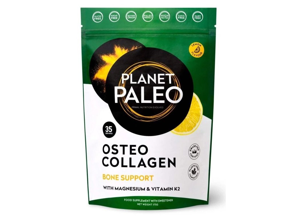 Ochutnejte nejkvalitnější kolagen na českém trhu od britské značky Planet Paleo, který jako jediný v Evropě disponuje certifikací Grass-Fed s logem na obalu, která garantuje, že maso pochází 100% z volného chovu. Osteo kolagen od Planet Paleo je velmi pečlivě a odborně formulovaná směs bylin, aktivních živin a kolagenových peptidů pro zdravý a aktivní životní styl nejen u sportovně založených osob, potýkajících se s potížemi spojených s kostmi a klouby, oslabenou imunitou a sklony k zánětům.