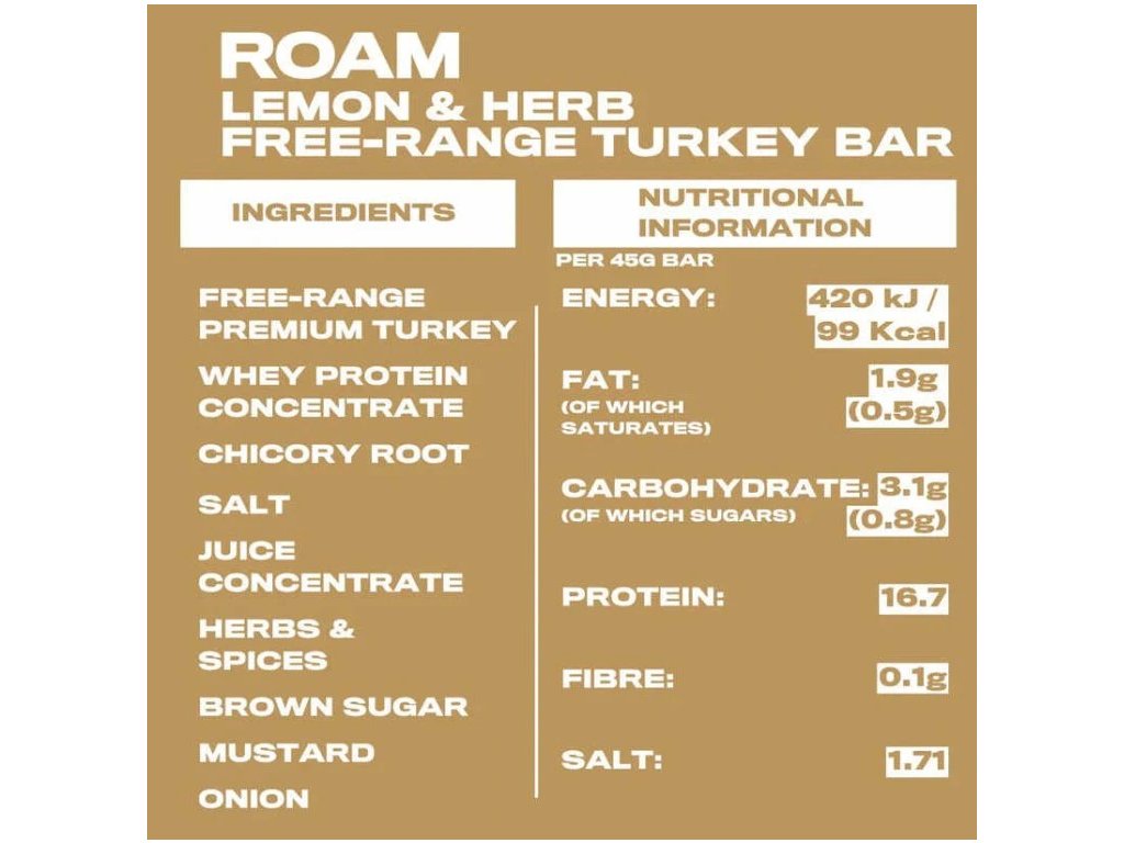 ROAM Proteinová tyčinka z krůtího masa s citronem a bylinkami 45g bez přidaného cukru, minimum ingrediencí, 16,7g bílkovin