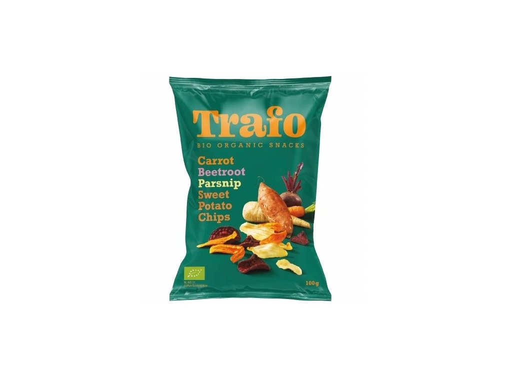 Kotlíkové zeleninové chipsy Trafo spojují kvalitu, chuť i výživu v harmonické kombinaci. Mix batátů, pastináku, mrkve a červené řepy přináší pestrou paletu chutí i barev, která potěší nejen jazyk, ale i oči. Díky výrobě v menších šaržích a šetrnému smažení při nižších teplotách si zelenina zachovává přirozenou chuť i důležité výživové látky.