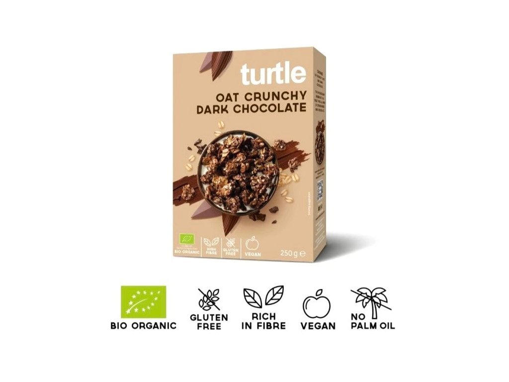 Turtle Křupavé pečené müsli s hořkou čokoládou - bez lepku 250g Bez lepku, se sníženým obsahem cukru