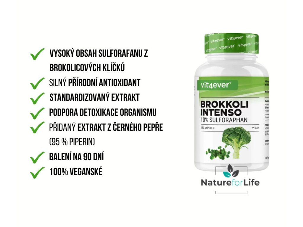 Vit4ever Brokolice Intenso je ideální volbou pro všechny, kdo chtějí přírodní cestou podpořit svůj organismus pomocí jedné z nejúčinnějších bioaktivních látek, které zelenina nabízí – sulforafanu.