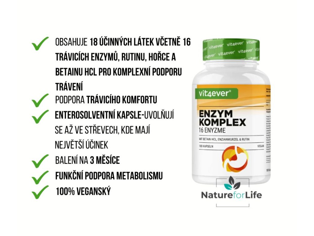 - 16 enzymů + rutin, betain HCl a extrakt z kořene hořce