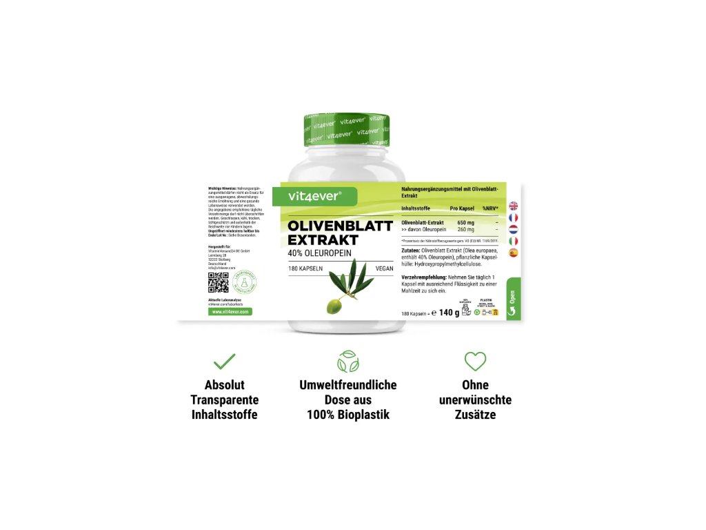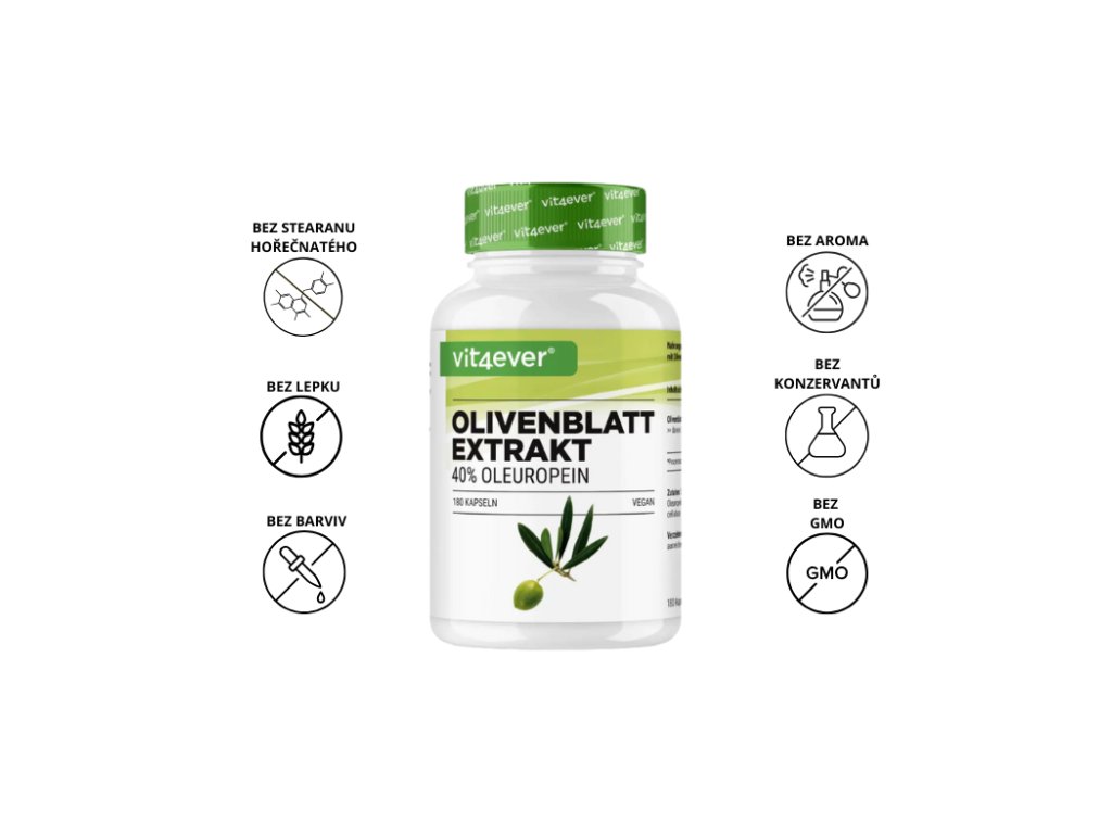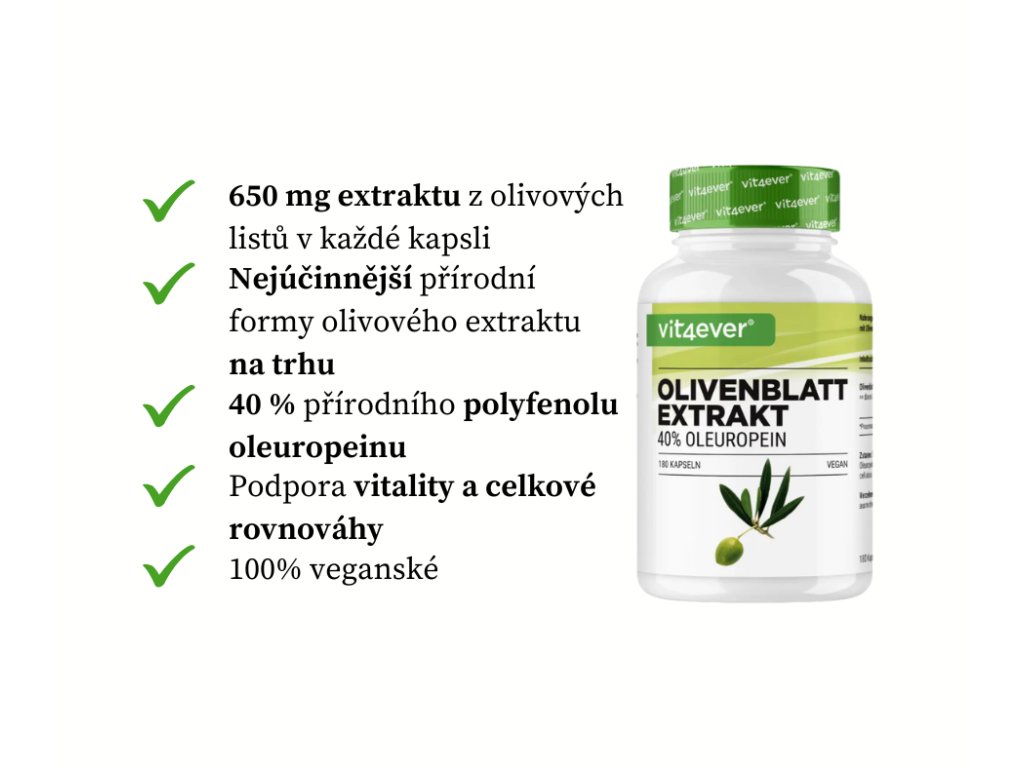 Vit4ever Olivový extrakt - 650 mg, 180 kapslí Extrakt z olivových listů, 40 % oleuropein