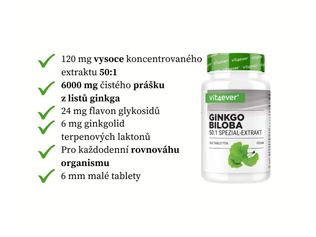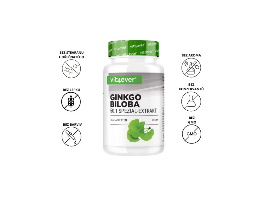 Vit4ever Ginkgo Biloba extrakt 50:1 - 365 tablet prémiový extrakt z listů ginkga v přesně dávkované formě, 120 mg extraktu v tabletě