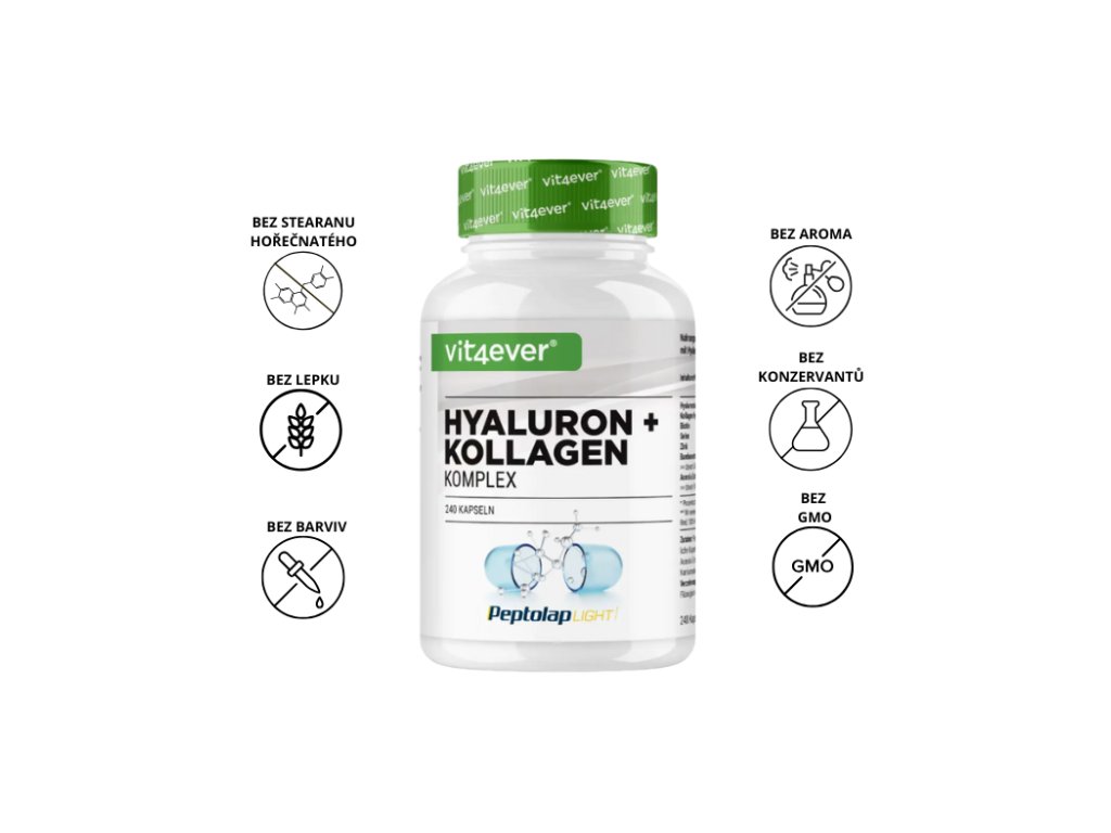 Vit4ever Hyaluron + Collagen Complex – kyselina hyaluronová & kolagen, 240 kapslí komplex pro pokožku, vlasy a nehty s vitaminem C a zinkem