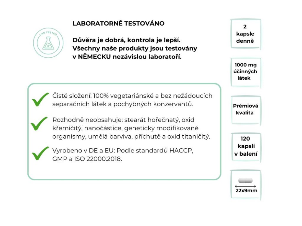 - Testováno na čistotu – každý šarže je analyzována na přítomnost těžkých kovů, pesticidů a jiných kontaminantů.