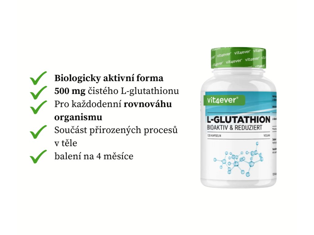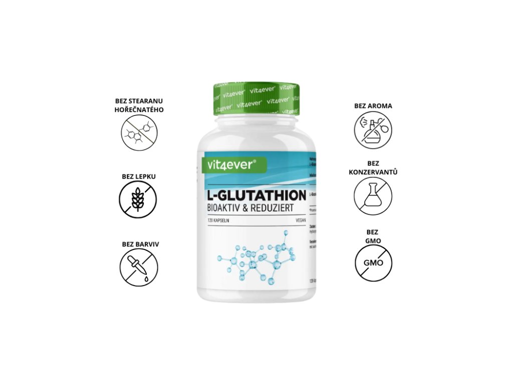 Vit4ever L-Glutathion 500 mg, 120 kapslí čistý glutathion v biologicky aktivní formě, fermentovaný původ