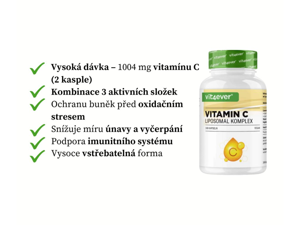 Vit4ever Lipozomální vitamín C - 500 mg, 240 kapslí Silná dávka vitaminu C v lipozomální formě pro lepší vstřebávání a delší působení.