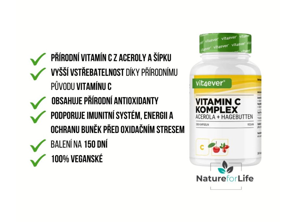 Vit4ever Vitamin C Komplex – Extrakt z Aceroly a Šípku – 300 Kapslí
