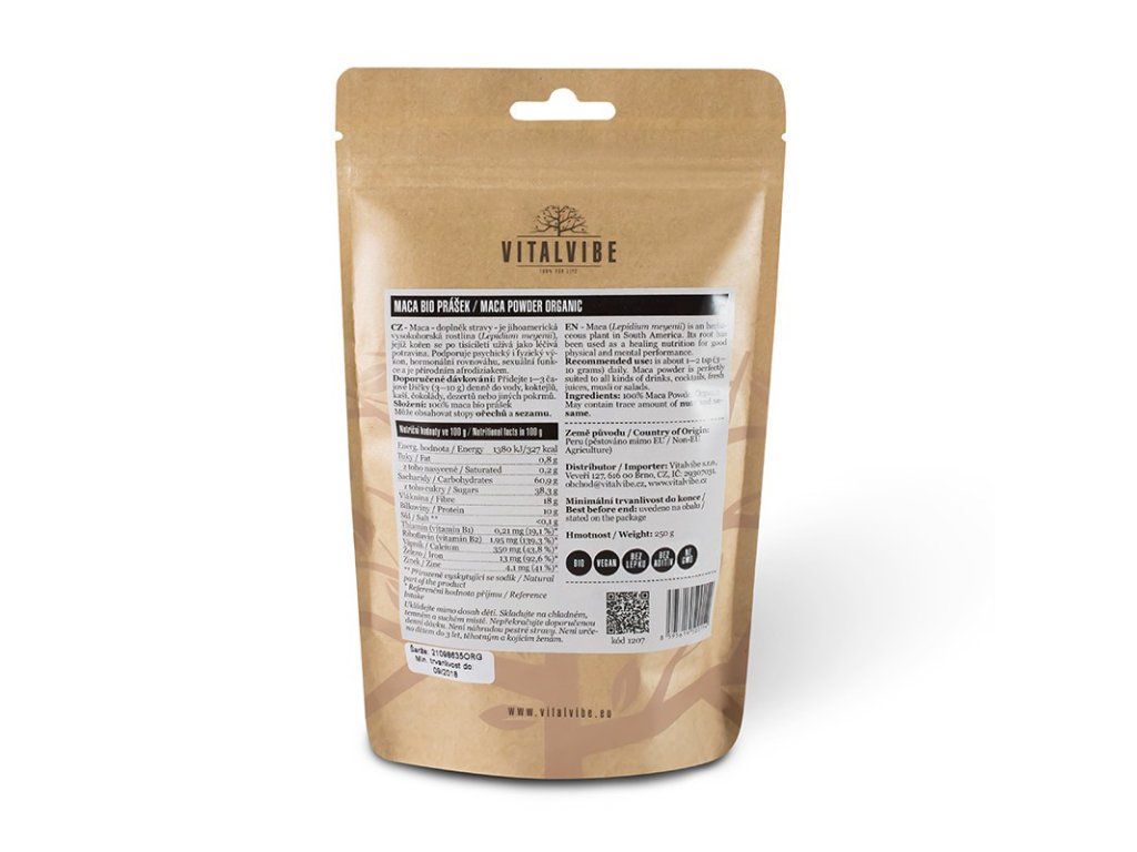 Naše maca pochází ze žlutého kořene, který se vzdáleně podobá našim bramborám. Tato plodina je bohatě obdařená živinami, které podporují fyzický a duševní výkon a pomáhají udržet optimální výdrž a vitalitu.