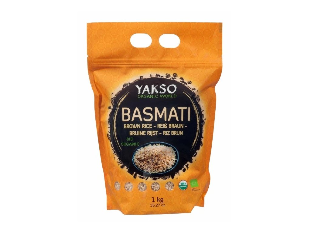 YAKSO Bio Basmati hnědá rýže 1kg nižší glykemický index než bílá rýže
