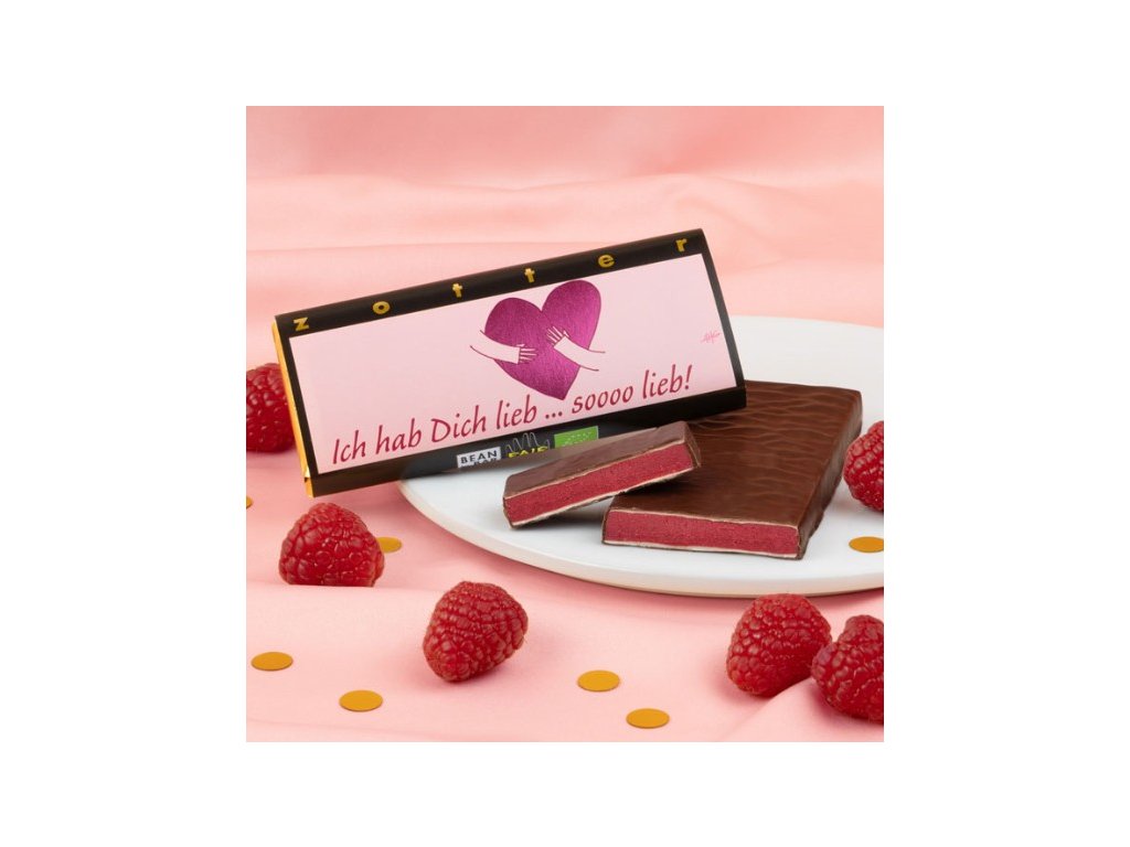 Zotter Bio hořká čokoláda Miluji Tě s malinovou ganache, 70 g