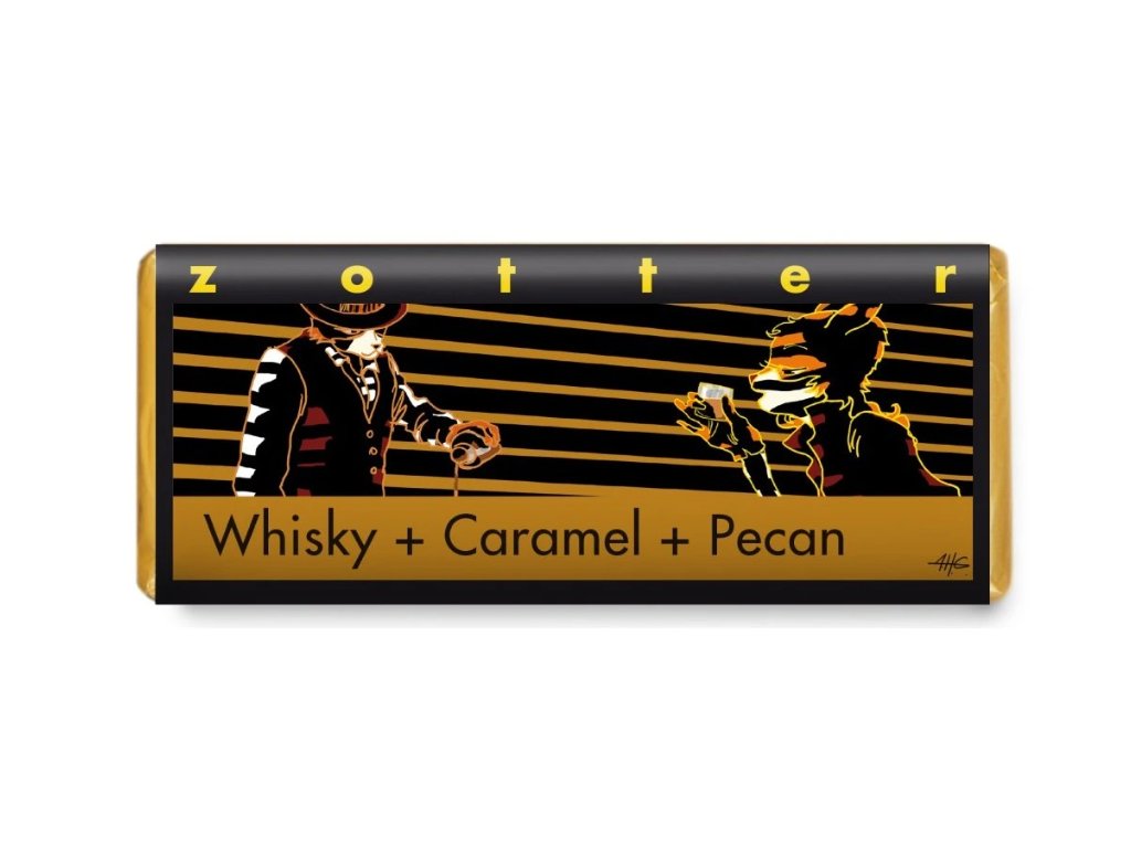 Zotter bio plněná hořká čokoláda Whisky, karamel, pekan, 70 g